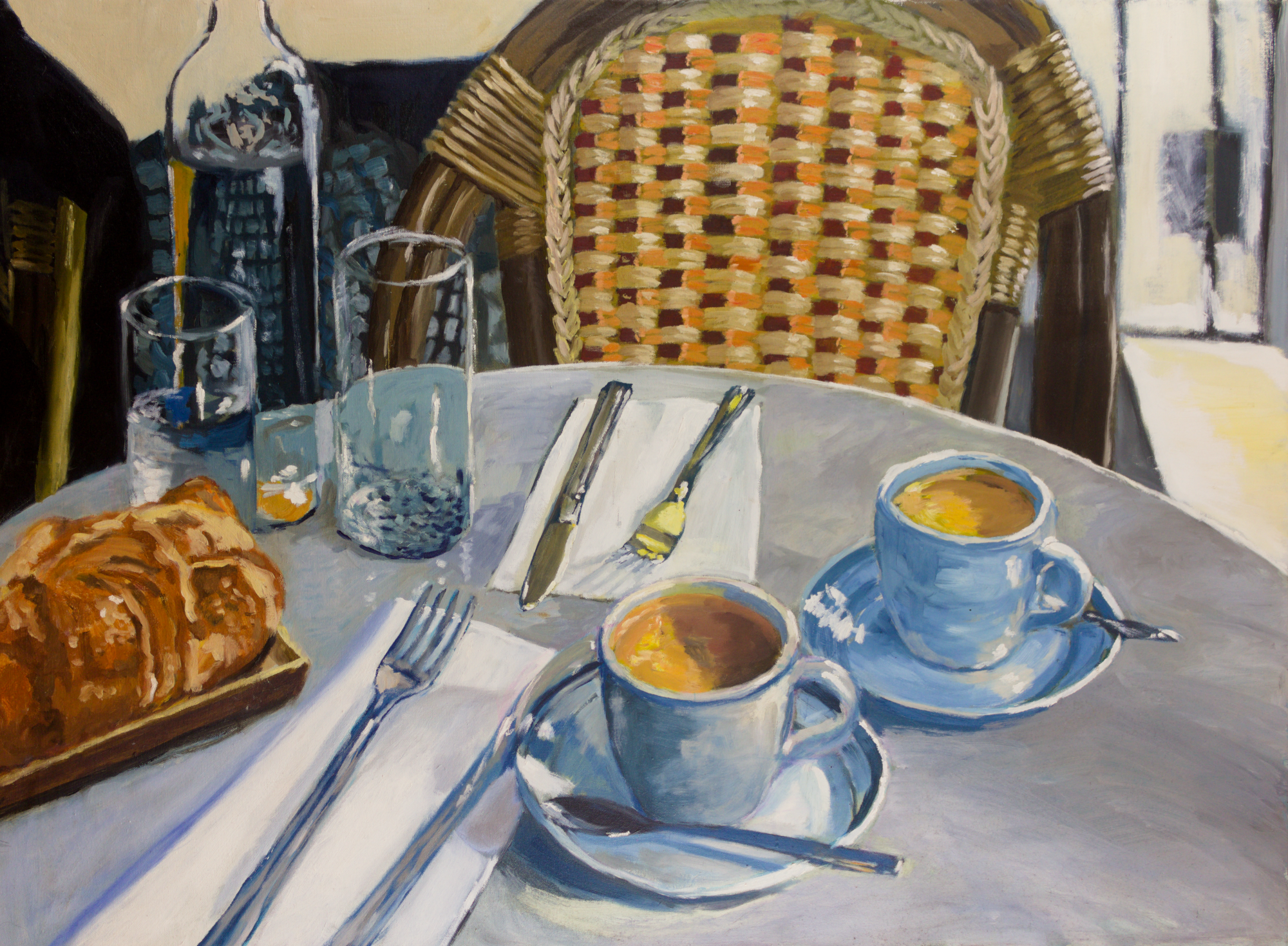 I had just run out of blank canvases when I decided to paint it, so I bought one from a nearby art shop (hence the unusual dimensions) and used acrylics instead of oil, afraid the latter wouldn’t dry in time for the flight home.
